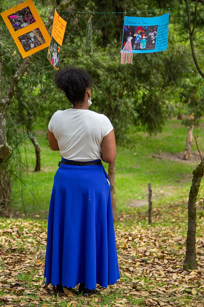 fotografías fotobordadas, acompañadas de audios binaurales expresados en poermas, testimonios y cantos acerca de su historia, cicatrices y cómo afrontan la migración en Ecuador